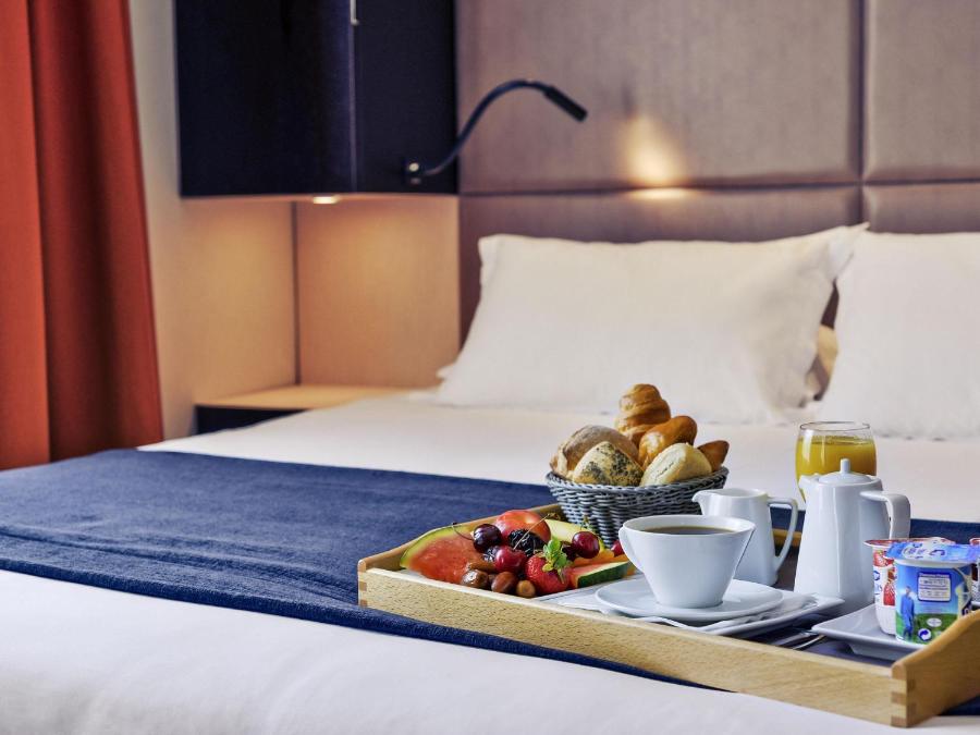 Cada mañana, el buffet de desayuno ofrece una excelente selección de productos regionales, destacando los sabores del País Vasco. Jamón de Bayona, queso de oveja, pastel vasco y otras especialidades locales conviven con opciones más clásicas para satisfacer todos los gustos. Bajo la luz tenue de la sala de restauración, este momento se convierte en un paréntesis gourmet que invita a disfrutar del instante antes de explorar la ciudad.
