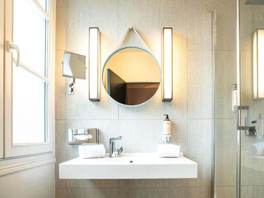 Desde su llegada, la atmósfera acogedora del vestíbulo marca el tono. La recepción es cálida, a cualquier hora del día y de la noche. El encanto actúa de inmediato gracias a una decoración cuidada que mezcla el carácter de un edificio del siglo XIX con toques contemporáneos. El ascensor antiguo, guiño al patrimonio, añade una nota de carácter al conjunto. Este sutil equilibrio entre tradición y modernidad se encuentra en cada rincón del establecimiento.