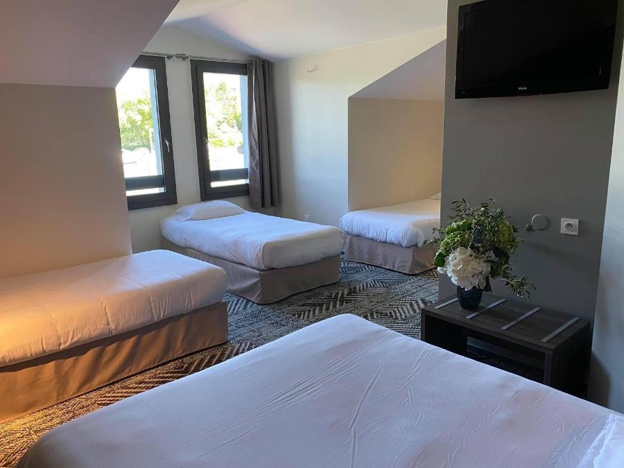 Les 49 chambres de l’hôtel offrent un espace généreux et une décoration contemporaine aux tons apaisants. Conçues pour répondre aux besoins des voyageurs en quête de repos, elles sont équipées d’une literie de qualité, d’une climatisation réversible et d’un accès Wi-Fi gratuit. Que vous voyagiez seul, en couple ou en famille, vous trouverez une configuration adaptée, avec des chambres pouvant accueillir jusqu’à cinq personnes. Deux chambres sont aménagées pour les personnes à mobilité réduite, et un ascenseur dessert l’ensemble de l’établissement pour faciliter vos déplacements.