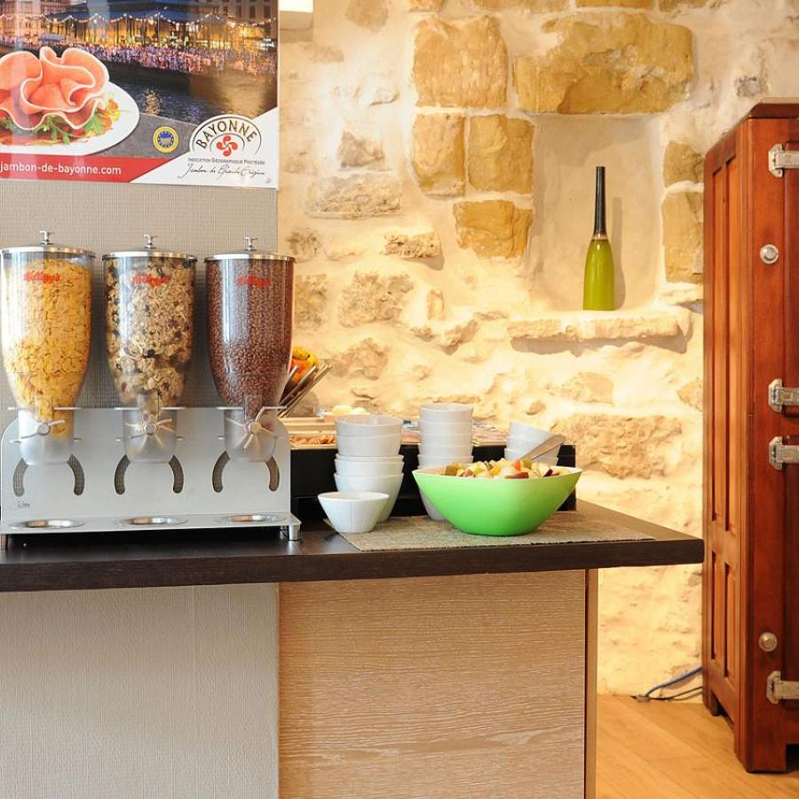 La mattina, un buffet vario è proposto per iniziare bene la giornata. La luminosa sala dove viene servito invita a prendersi il tempo per gustare un momento culinario prima di partire alla scoperta della città. La reception, aperta dall'alba fino a tarda notte, assicura un'accoglienza attenta e un'assistenza personalizzata per tutta la durata del soggiorno. È disponibile anche un servizio di deposito bagagli e una cassaforte presso la reception per facilitare il passaggio dei viaggiatori in transito.